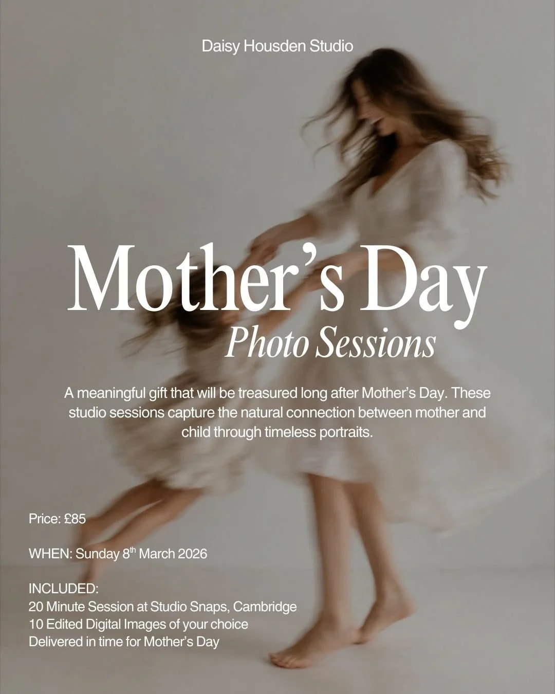 Daisy Housden is a Cambridge-based portrait photographer specialising in editorial, maternity and newborn portraiture. Her work is defined by a refined, timeless aesthetic, combining an editorial eye with a classic and considered approach to capture natural beauty and authentic connection. She photographs from Studio Snaps, her own Cambridge studio, where she creates elegant, intentional imagery designed to be cherished for years to come.